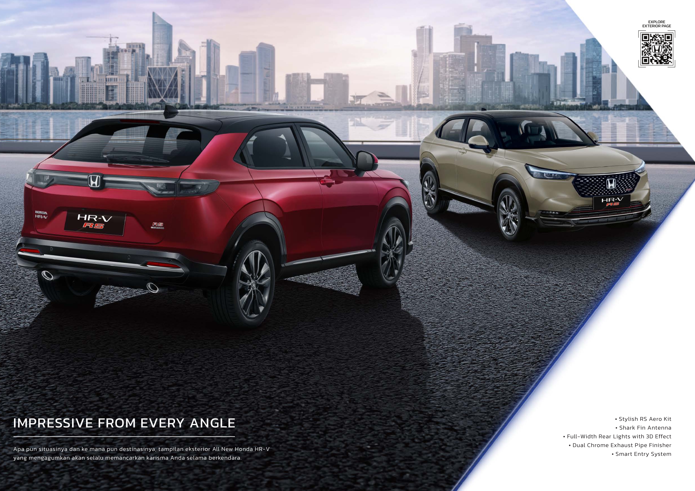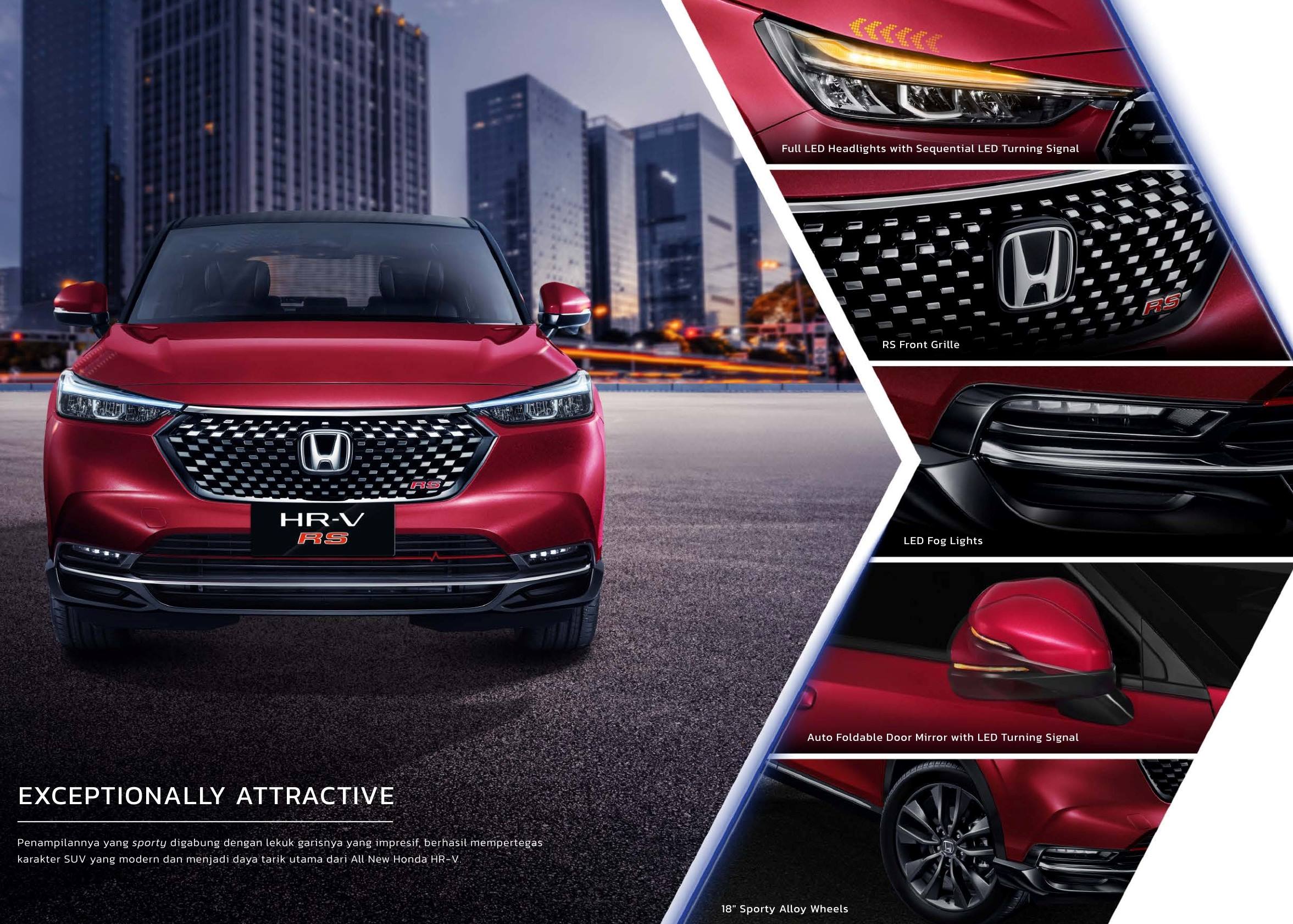 Honda HR-V kini tampil dengan tampak depan baru yang lebih stand out, kental dengan aura maskulin yang sporty dan elegan. Karakter SUV oremium yang tangguh terpancar dari garis-garis otot bodinya yang aerodinamis, mempertegas kesan outstanding dari segala sisi.